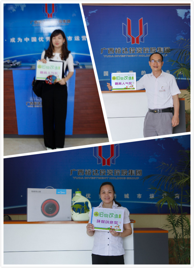 活动于5月1日正式开始,经过为期10天的投票,最终评选出了6名获奖者,并于12日下午携带参赛作品到集团领奖。获得创新艺术奖韦女士表示,此类活动很有意义,不仅对旧物进行二次利用,而且体现了可持续发展与资源节约的理念。“我们可以从小物入手,对家里的废旧物品进行重新设计,让它们焕发出新的光彩摆在家中,拿在手上都是让心情变美丽的法宝,同时还可以为环保出一份力。”