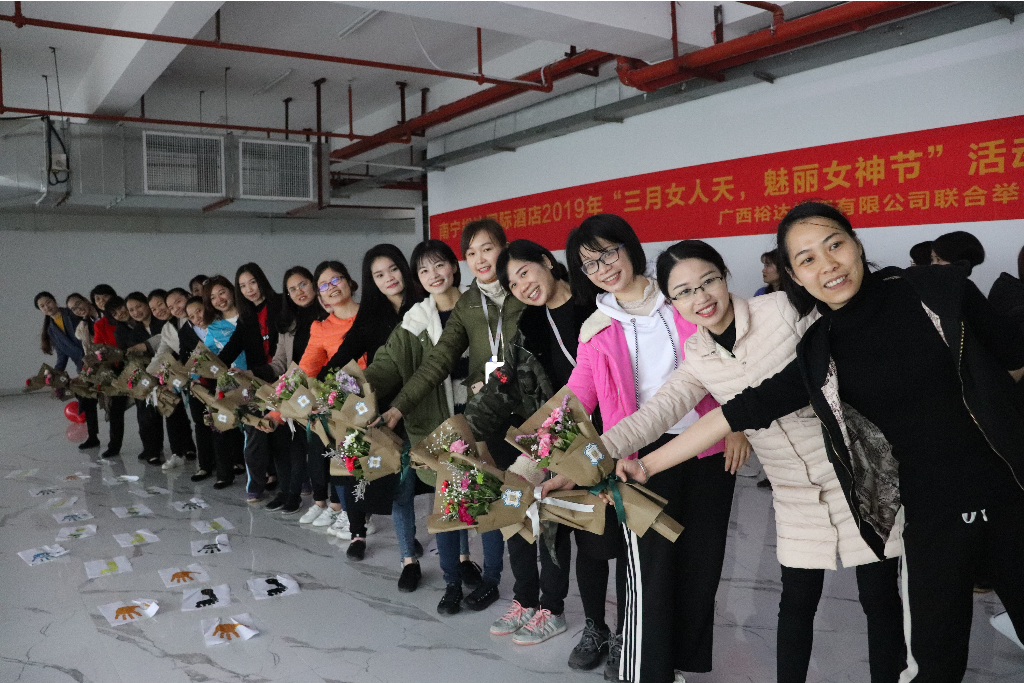为了让全体女职工度过一个和谐温馨、简单快乐的“三八”妇女节,进一步激发女职工爱岗敬业,锐意进取的工作热情,3月8日上午,南宁裕达国际酒店联合广西裕达投资有限公司及裕达集团总裁办在广东大厦38楼举办了以“三月女人天,魅力女神节”为主题的趣味活动。