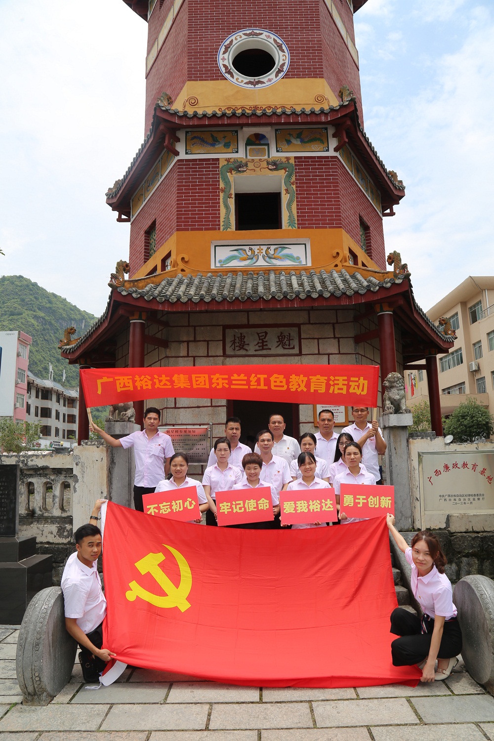 东兰县是全国著名的革命老区,是全国最早开展农民运动的地区之一,是广西农民运动的发祥地,是韦拔群、韦国清的故乡,为让集团党员追寻革命先烈的足迹,铭记共产党人的初心,在建党98周年之际,2019年7月1日至2日集团党支部书记谢家伟带领支部15名党员代表赴东兰县开展“不忘初心、牢记使命”红色教育活动,集团公司董事长兼总裁邓亚保、广西福毅德投资有限公司董事长黄毅出席本次活动,城北街道党工委组织干事卢玉妮受邀参加活动。