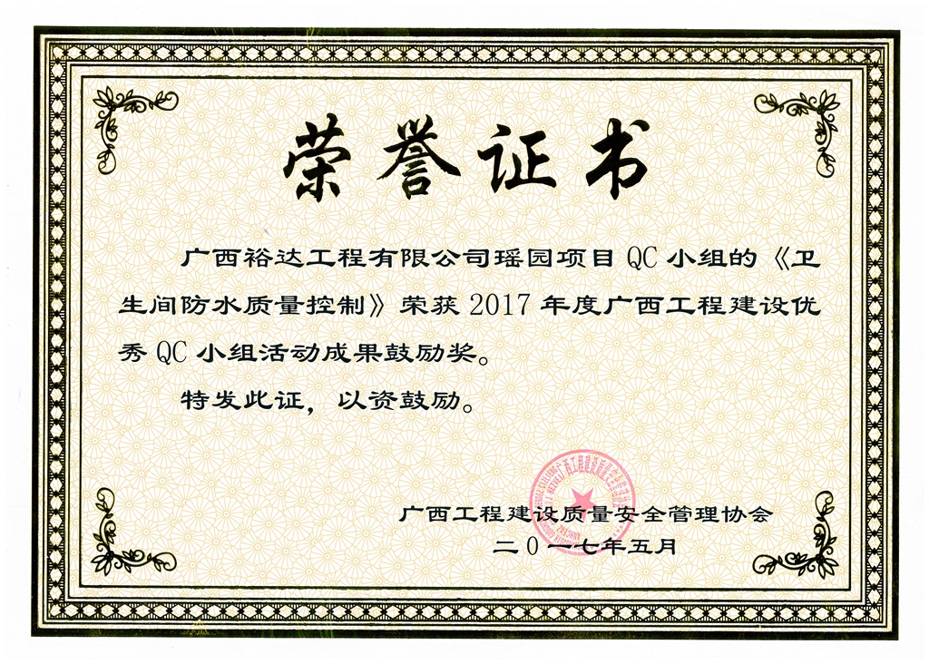 2017年广西工程建设优秀QC小组活动成果鼓励奖