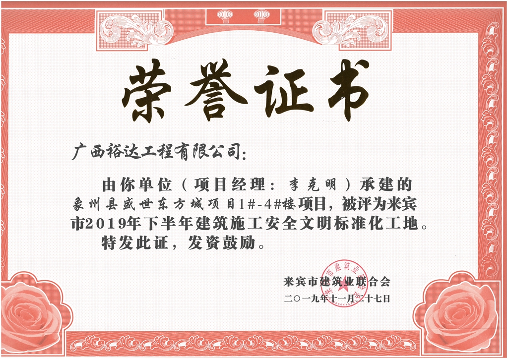 下一篇:金恒·浅水湾建设项目被评为来宾市2019年下半年建筑施工安全文明标准化工地(项目经理:胡凌毅)
